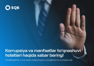 В системе Узпромстройбанка стабильно функционируют каналы связи, направленные на предотвращение коррупции и конфликта ин ...