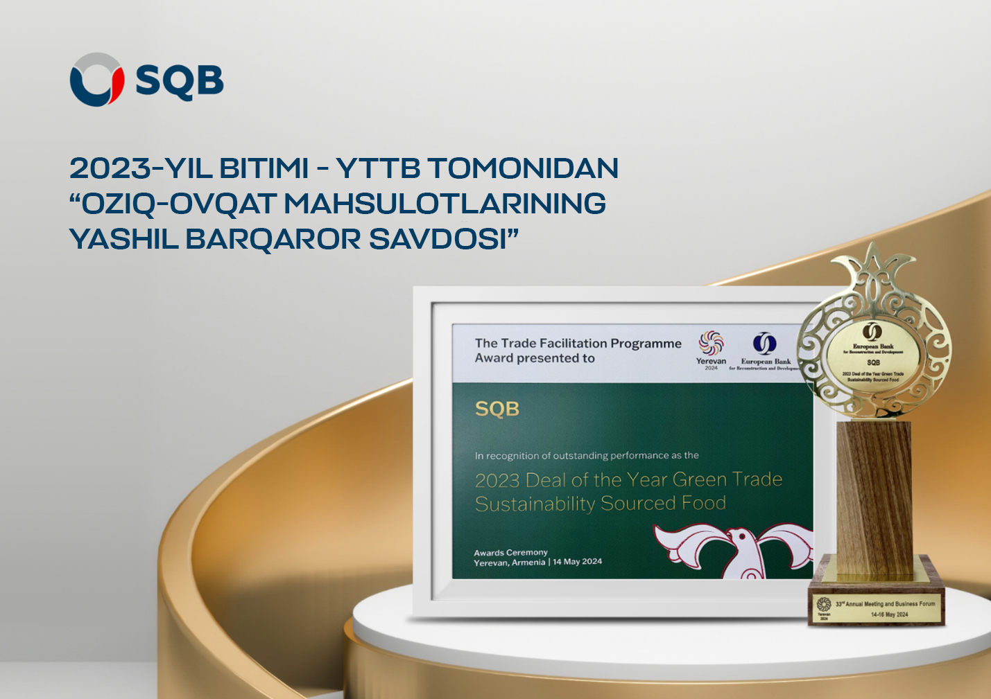 YTTBning “O‘zbekistonda yashil savdoni moliyalashtirish” mukofoti