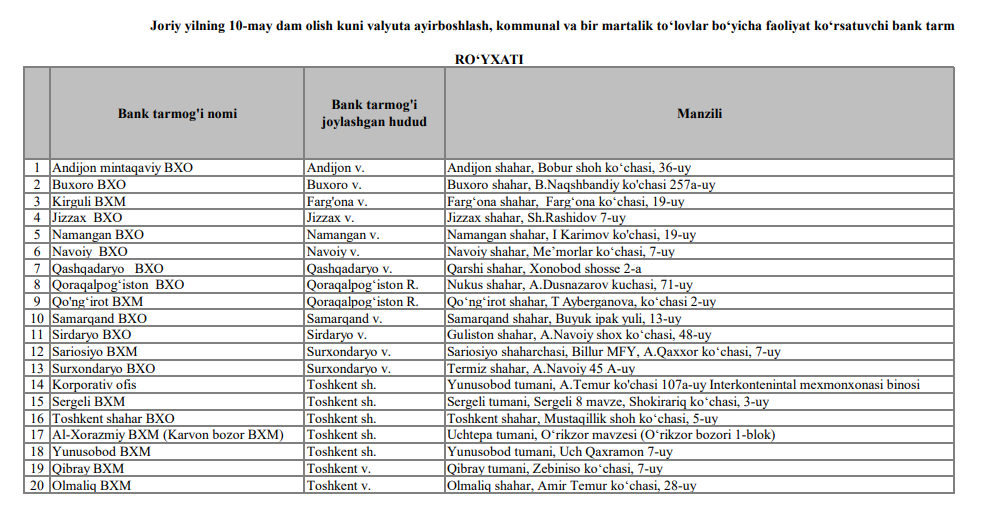 Hurmatli mijozlar! Ma’lum qilamizki, Andijon va Buxoro bank xizmatlari ofislari mustaqil tarkibiy b ...