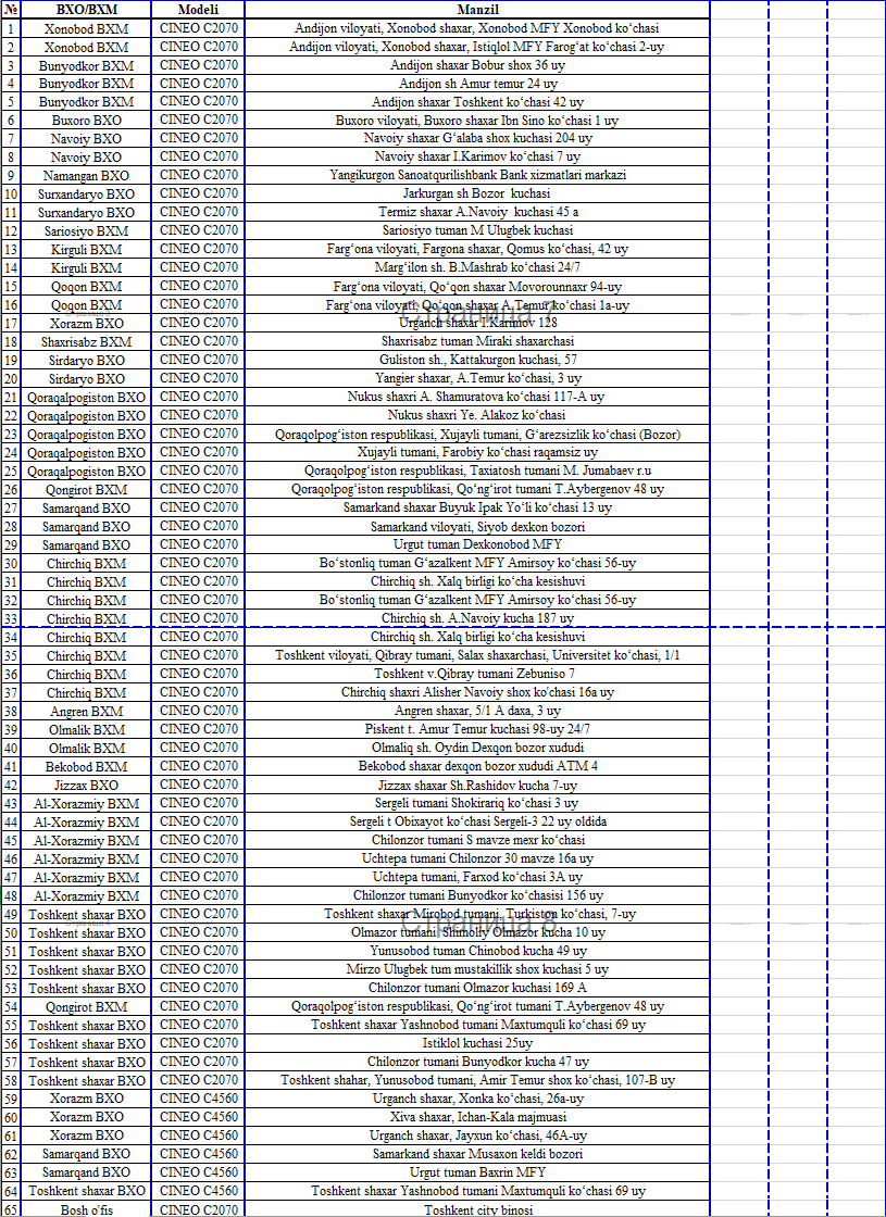 Bankomatlar manzillari bilan bu yerda tanishishingiz mumkin.