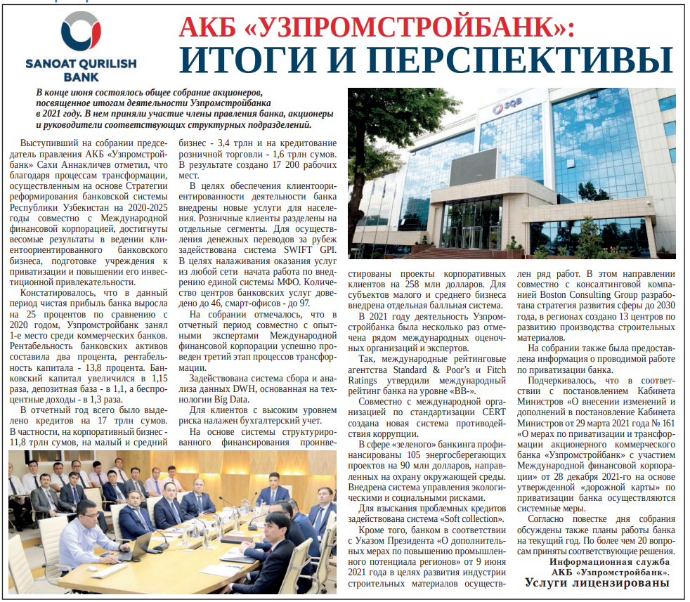 В системе Узпромстройбанка стабильно функционируют каналы связи, направленные на предотвращение коррупции и конфликта ин ...