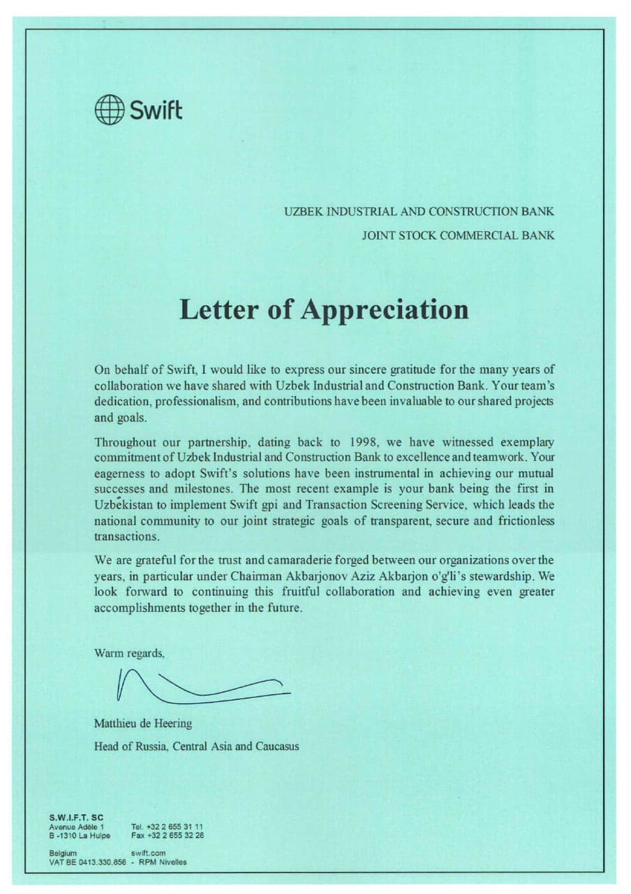 АКБ "Узпромстройбанк" установил надежные и доверительные отношения с ведущими банками Европы, США, Азии и стран СНГ.
