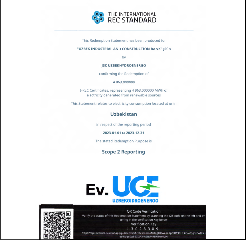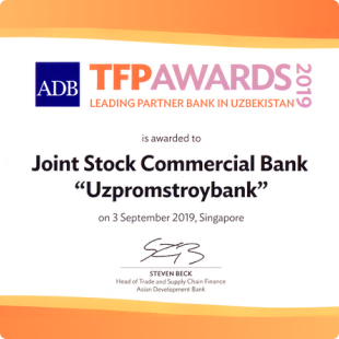 Awards from Euromoney: “Uzbekistan’s best bank for sustainability”