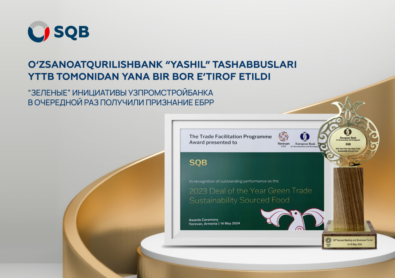 YTTBning “O‘zbekistonda yashil savdoni moliyalashtirish” mukofoti