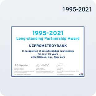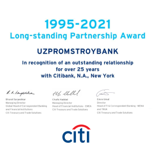 Citibank bilan uzoq muddatli hamkorlik yuzasidan mukofoti