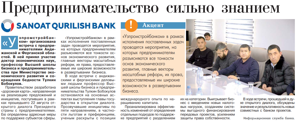 Hurmatli mijozlar! Xabar beramizki, “O‘zsanoatqurilishbank” ATB tomonidan o‘rta biznes subyektlari ...